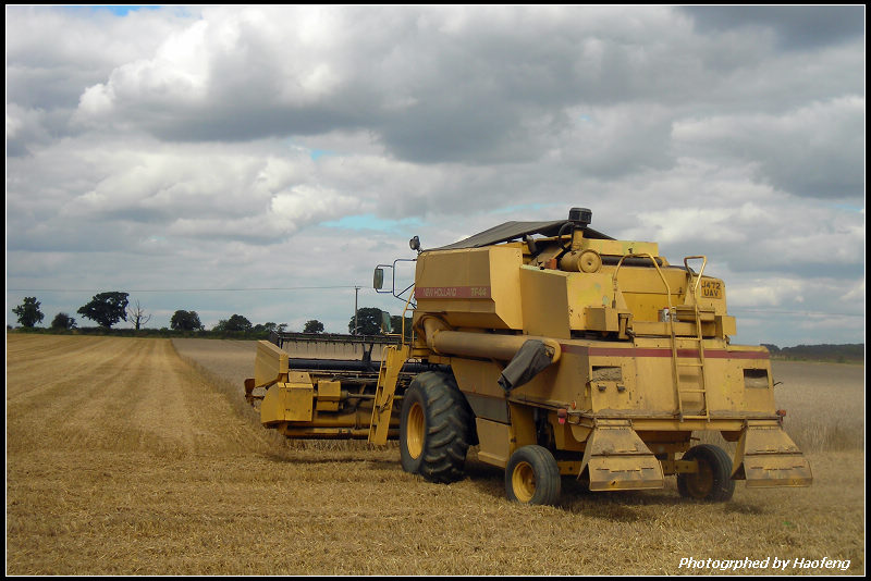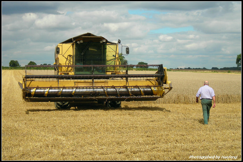 「大怪獸」發動起來的聲音震天尬響,感覺整塊地都在震動。接著那怪獸就好像是電動理髮器在理三分平頭,從麥田的這一頭推到那一頭,把成熟硬挺的麥梗全部推倒剪下,一根都不剩。